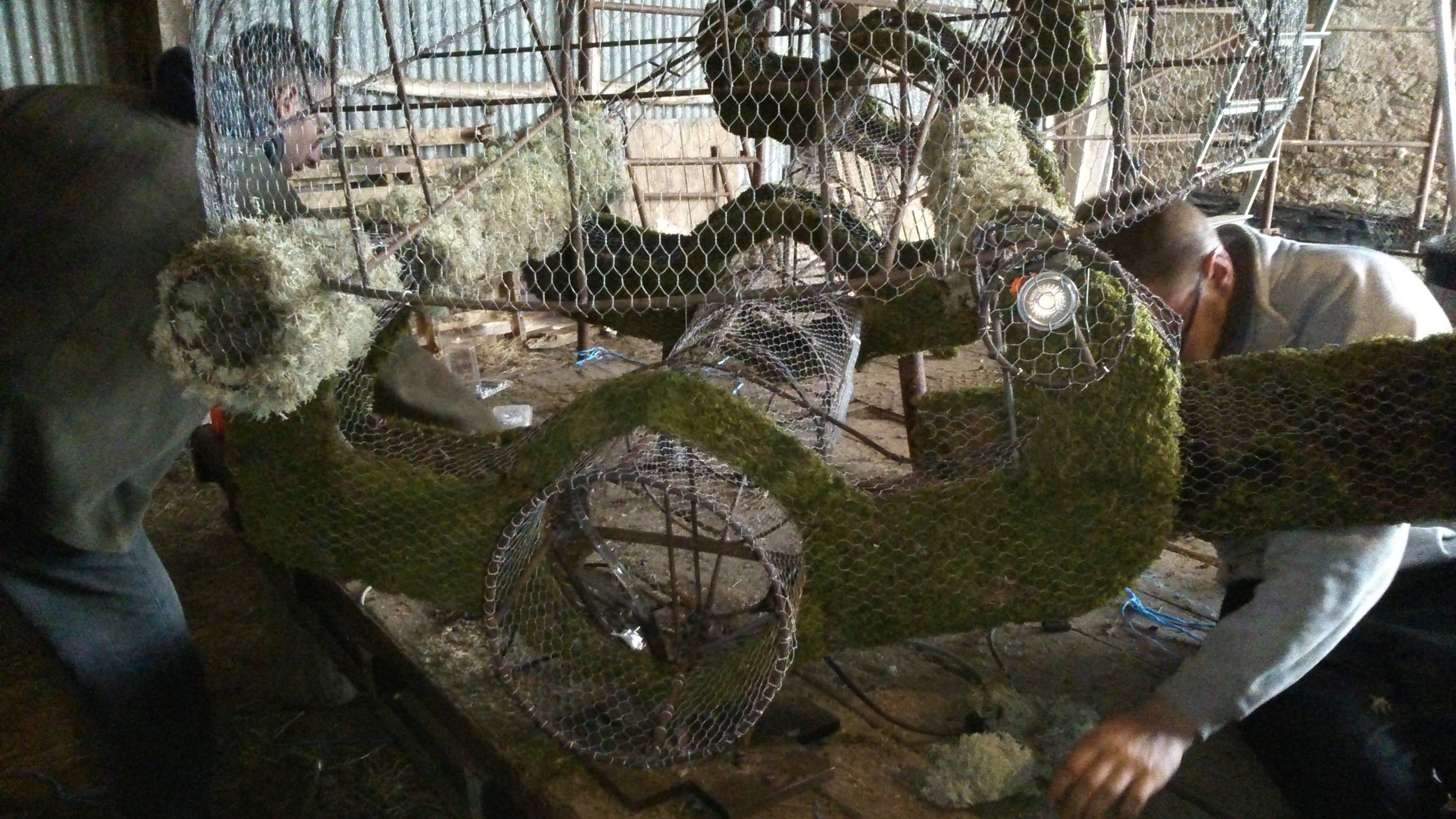 La structure une fois achevée, est prête à recevoir 30 à 40 m2 de grillage en fonction du volume à recouvrir. Une judicieuse étude préalable déterminera les différents grillages qui recevront mousse, lichen et bien sur des jonquilles.