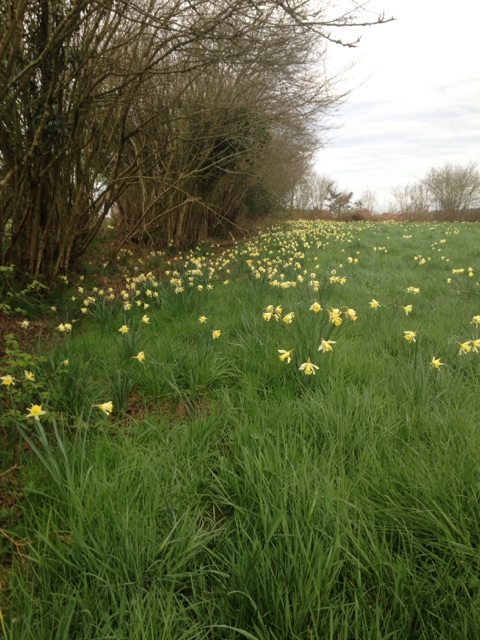 La tige est glabre. Elle est assez aplatie, deux angles sont visibles le long de la hampe. La plante fait généralement entre 20 et 40 cm de haut. Les feuilles sont plates et assez charnues. Leurs extrémités sont arrondies. Elles sont toutes linéaires, larges de 4 à 15 mm. Elles dépassent parfois la tige en longueur. Elles sont regroupées par 2, 3, 4 ou 5, toujours à la base de la plante. Elles sont de couleur bleu-vert. La plante est assez polymorphe. Selon l’éclairage, le terrain, elle aura une touffe de feuilles plus ou moins dense, la fleur sera érigée plus ou moins haut. La fleur jaune, qui ressemble à celle de la jonquille, est grande et mesure de 4 à 6 cm de diamètre ; elle entoure une couronne cylindrique crénelée de 2 cm de long. Chaque fleur, de couleur jaune, est solitaire au sommet d'une tige nue. La fleur sort d'une spathe membraneuse régulière, penchée, à tube soudée à l'ovaire, formée de six divisions soudées à leur base. Il se trouve parfois des échantillons à fleurs doubles, à étamines transformées en pièces florales. Sa floraison commence et se termine généralement au mois d'avril mais elle peut commencer dès le mois de janvier et se finir au mois de mai. La durée de vie de cette fleur est de deux ou trois semaines.